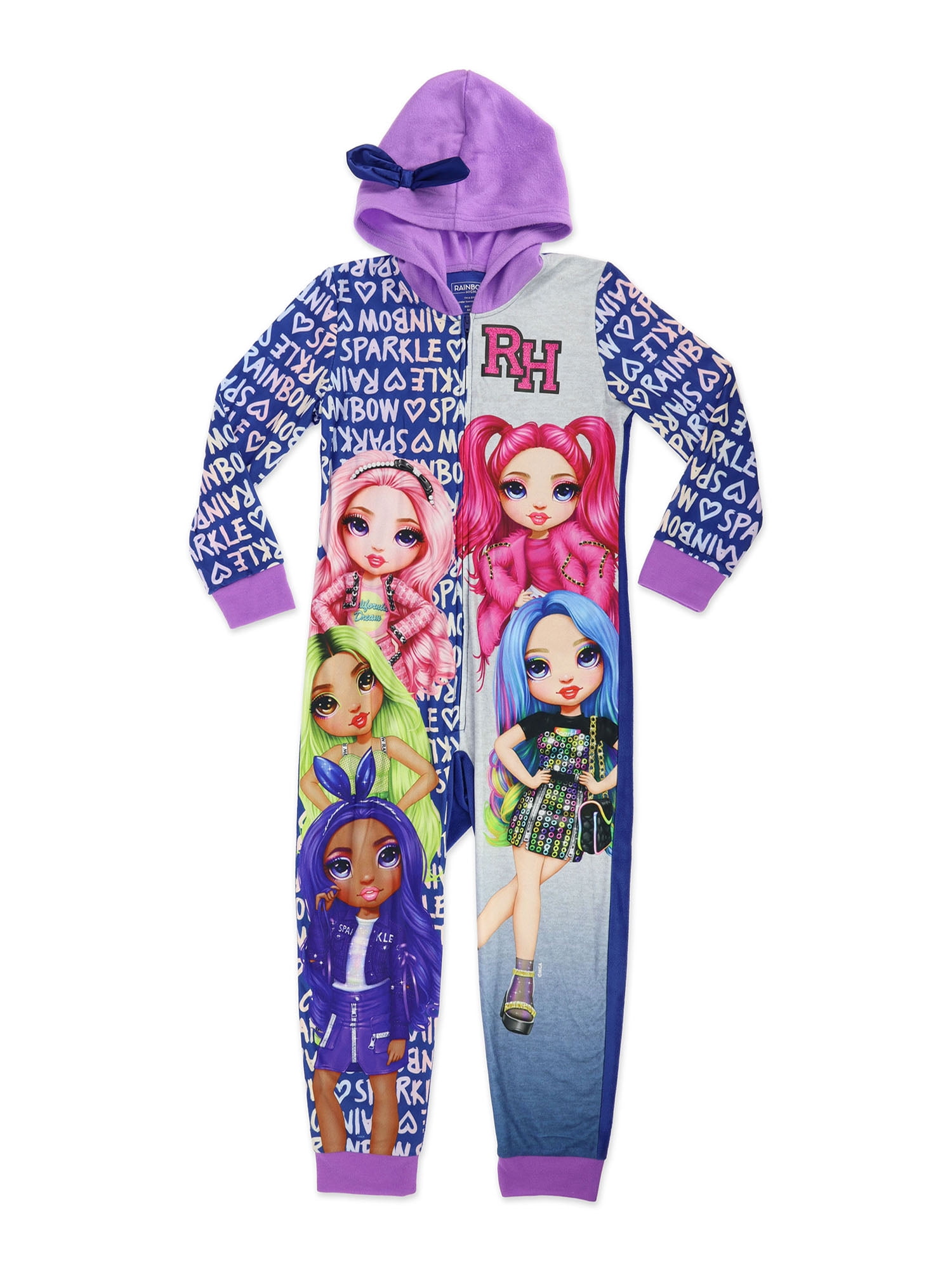 Rainbow High Girls Hooded Union Suit With Bow Pajama Sizes 4 12 Walmart Com