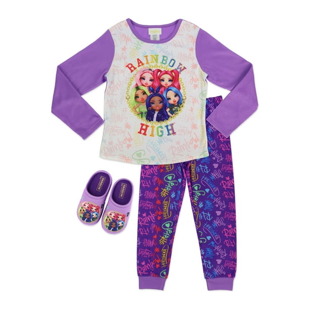 Rainbow High Girls 2 Piece Long Sleeve Top With Pants And Slippers Pajama Set Sizes 4 12 Walmart Com